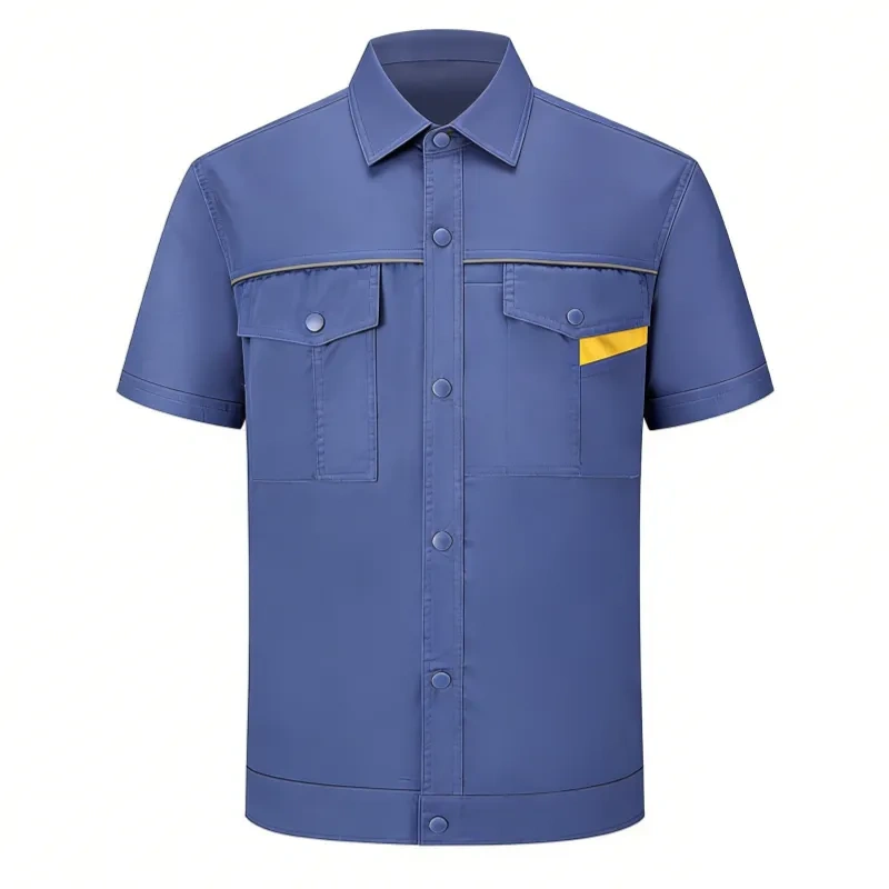 Short Sleeve Blue Work Shirt with Chest Pockets