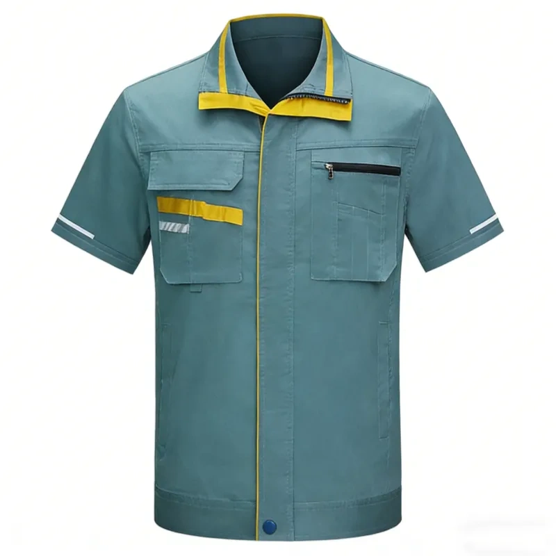 Short Sleeve Work Shirt with Contrast Trim & Multi-Pocke